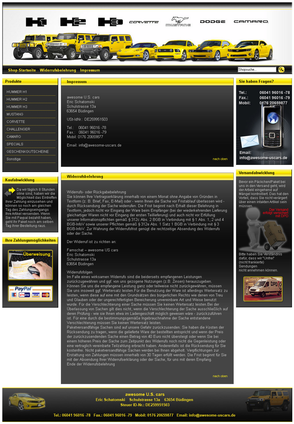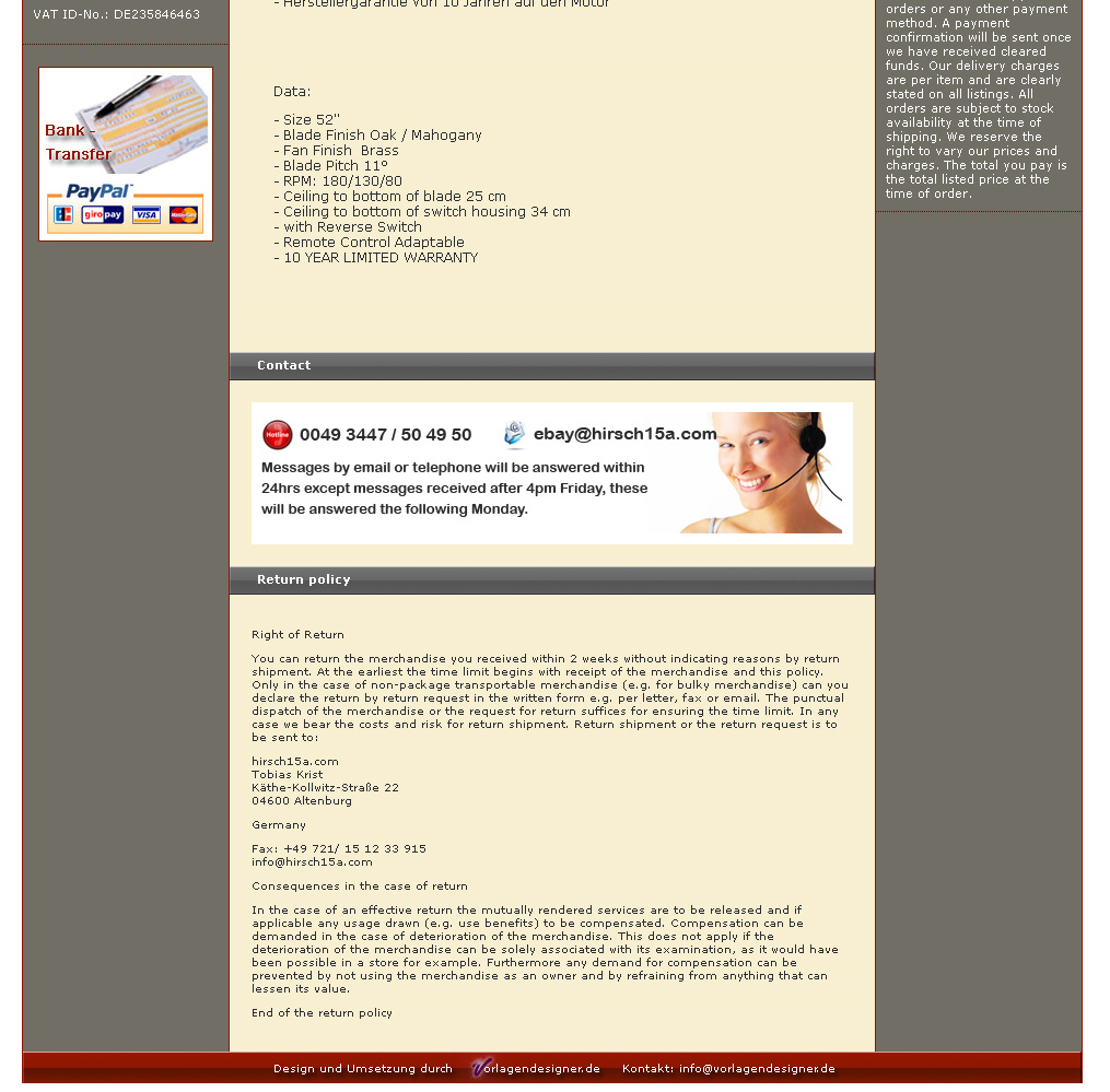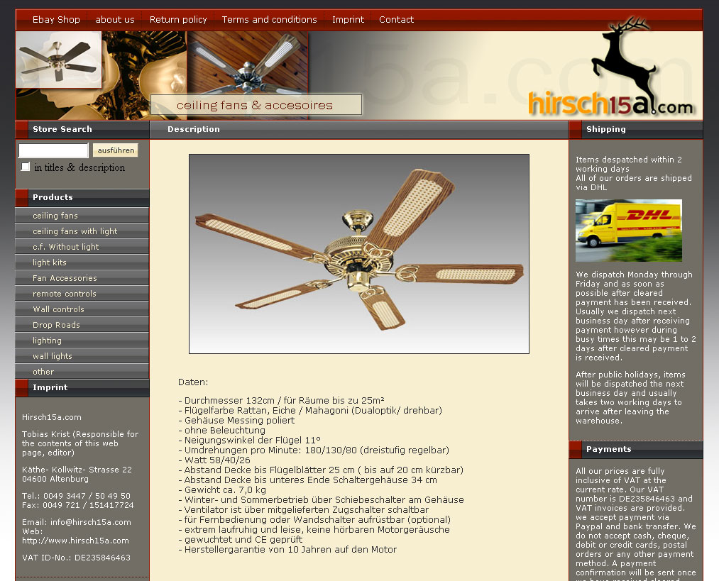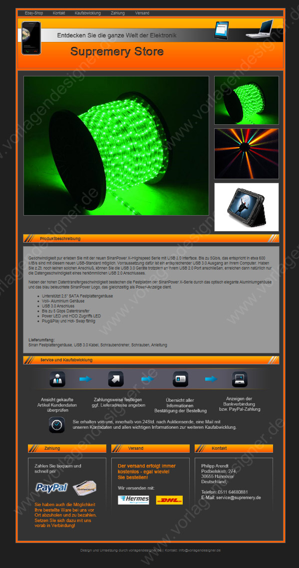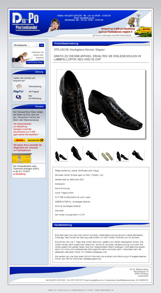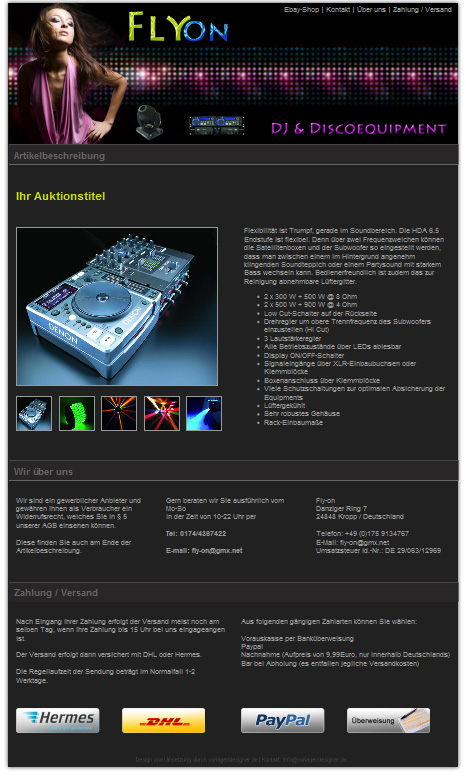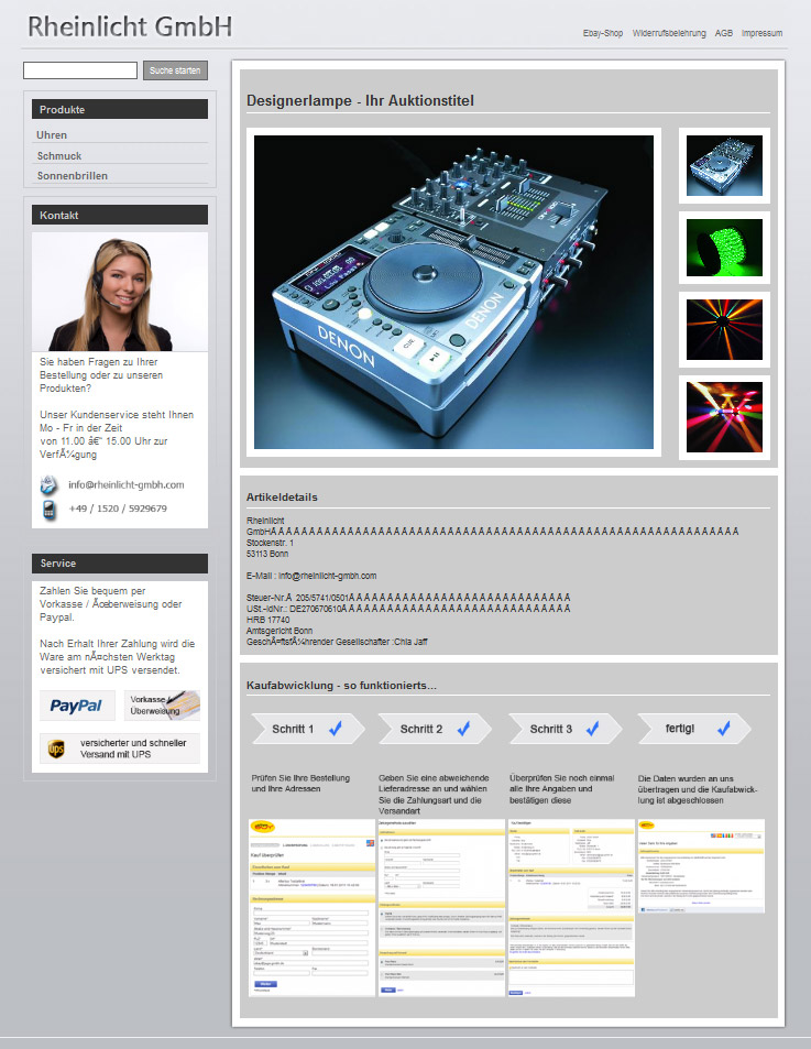 Ebay-Shop mit Willkommensseite, Auktionsvorlage sowie einer Shopseite für die rechlichen Informationen